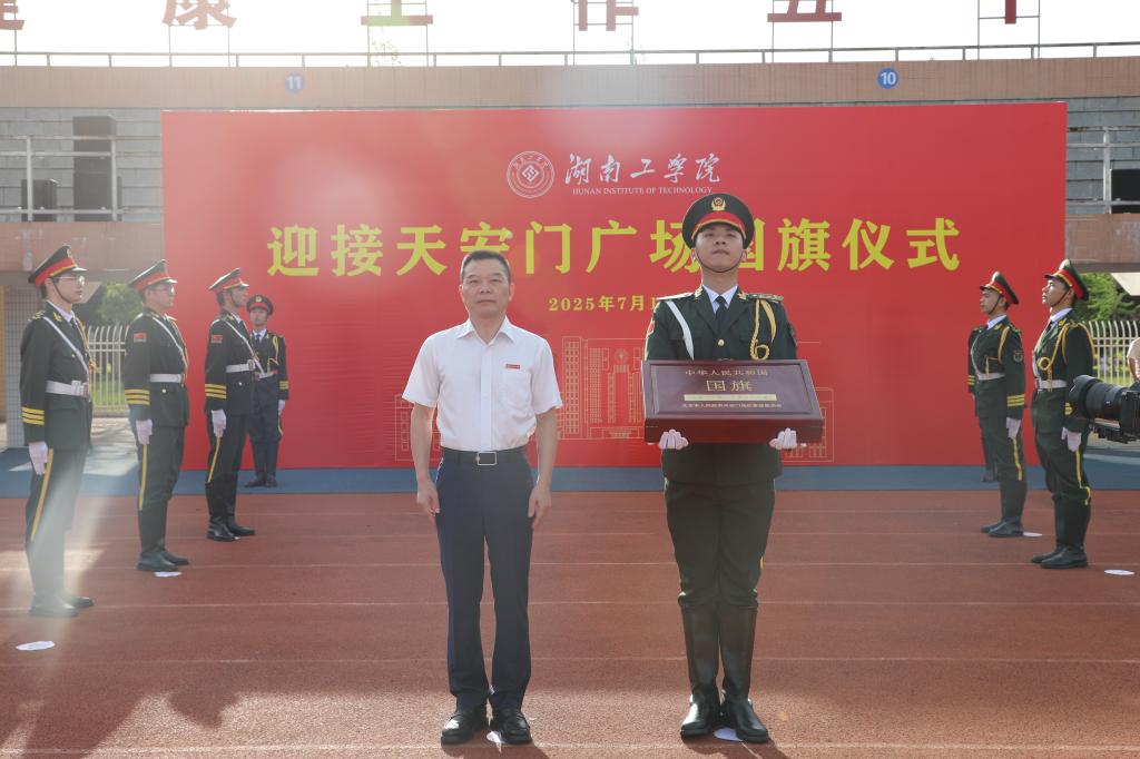 7月1日上午,在中国共产党成立104周年之际,学校在北运动场举行迎天安门国旗仪式。校党委书记曹执令将一面曾在天安门广场高高飘扬、承载着神圣使命的五星红旗,郑重交接给校国旗护卫队。来自全校的师生代表1200余人共同见证了这一庄严时刻。仪式由校党委副书记何建雄主持。